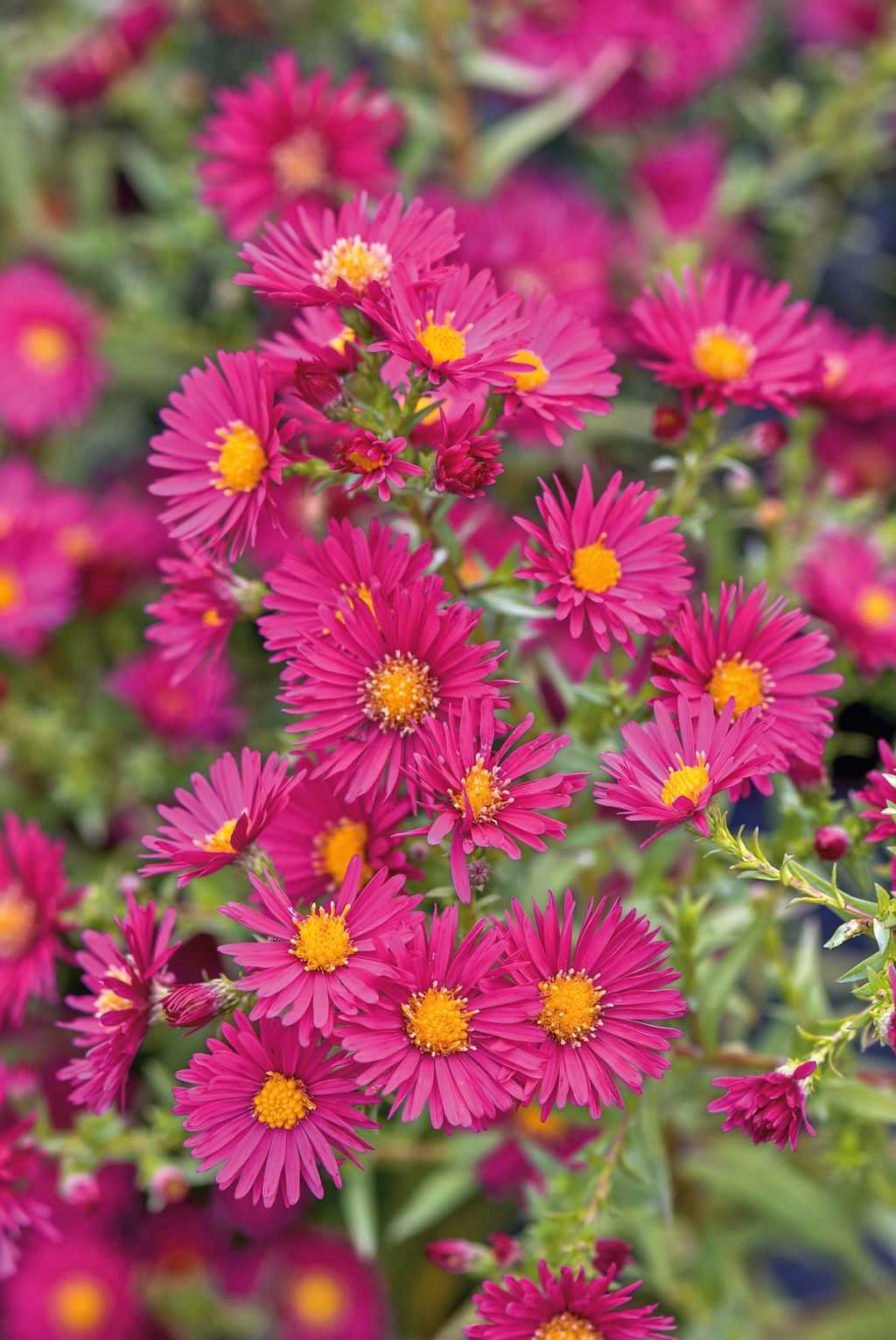farbintensive Sorte, halbgefüllte, strahlenförmige Blüten, aufrechte Stängel, buschig, bildet Ausläufer